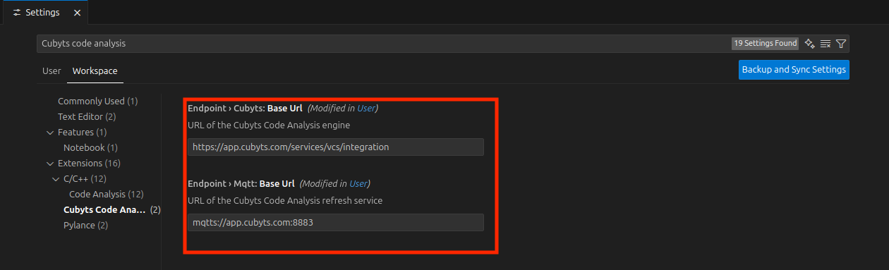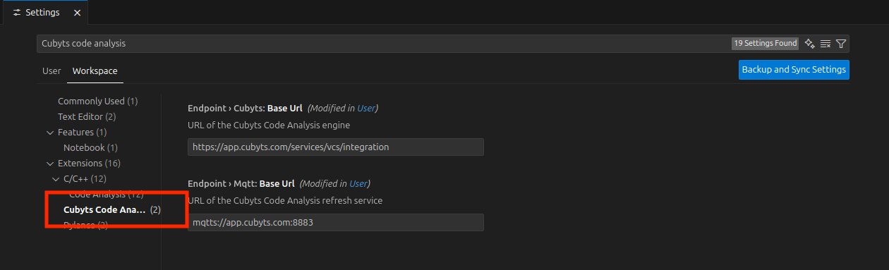 Step 2: Access the settings associated with Cubyts code analysis as shown in the image below: